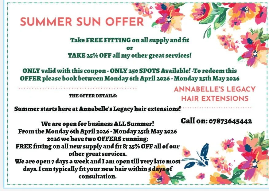 Here at Annabelle’s Legacy hair extensions we want to give you the very best in customer service as well as great offers.